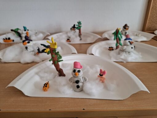 Pri likovni dejavnosti smo v 1. d in 1. b razredu ustvarjali s plastelinom...