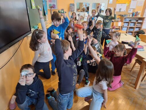 Sedmošolci so na tehniškem dnevu izdelali vodne rakete in jih spuščali v zrak. V drugi delavnici so pretakali vodo...