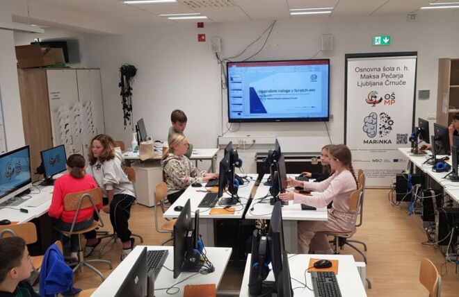 Na tretjem srečanju projekta MARiNKA so šestošolci spoznali, kako v Scratchu sprogramirati besedilne naloge. Najprej smo ponovili kaj je algoritem in program, malo povadili v Pišku in se lotili besedilne naloge iz učbenika za matematiko. Sprogramirali smo jo tako, da si je program sam izmišljeval podatke in preverjal pravilnost odgovorov.